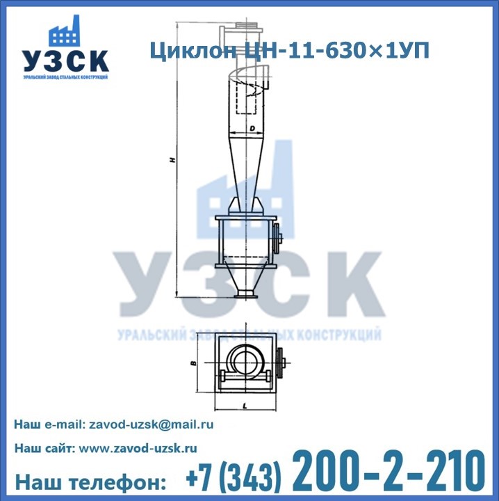 Уральский Завод Стальных Конструкций в Рыбинске производит и продает надежное, эффективное и производительное оборудование, имеющее длительную гарантию и большой эксплуатационный ресурс. УЗСК также предлагает циклоны из нержавеющей стали высокого качества. По желанию заказчика толщина стали для циклона и бункера может быть увеличена. Заказать и купить циклоны ЦН-11 высокого качества и по доступной цене можно через наш сайт или по указанному в разделе «Контакты» телефону.